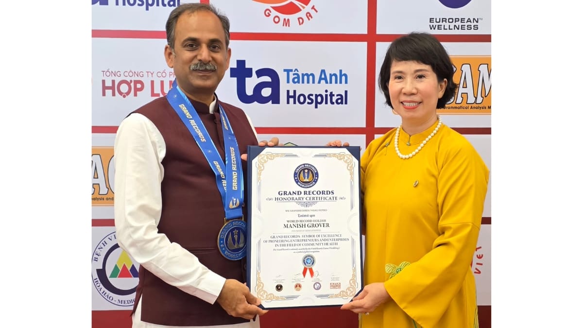 नई दिल्ली, सितंबर 23: भारत के प्रख्यात आयुर्वेद गरुु और HIIMS (Jeena Sikho) के संस्थापक आचार्य मनीष जी को 21 सितंबर, 2025 को, Ho Chi Minh City में आयोजित Vietnamese Record Holders convocation समारोह में प्रतिष्ठित “Grand Records WorldKings Honorary Certificate” से सम्मानित किया गया।